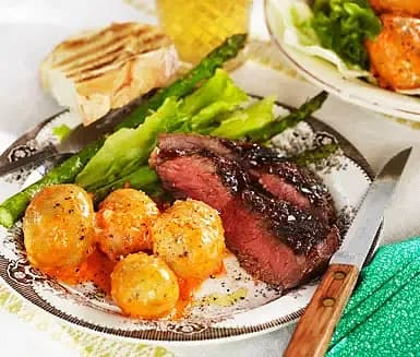 Biff med rödvinssås och hasselbackspotatis