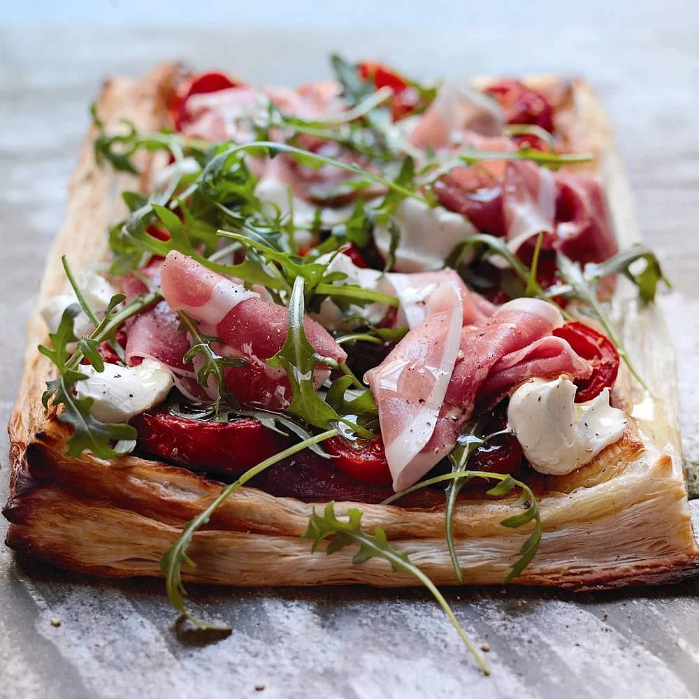 Vegopizza med soltorkade tomater, färska örter, pesto & mozzarella
