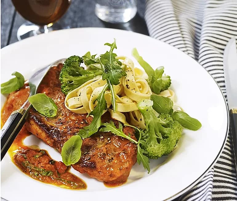 Fläskfilé med tomat- och basilikasås