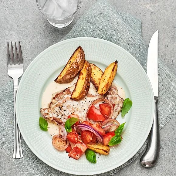 Stekt fläskkarré med tomat- och basilikasallad