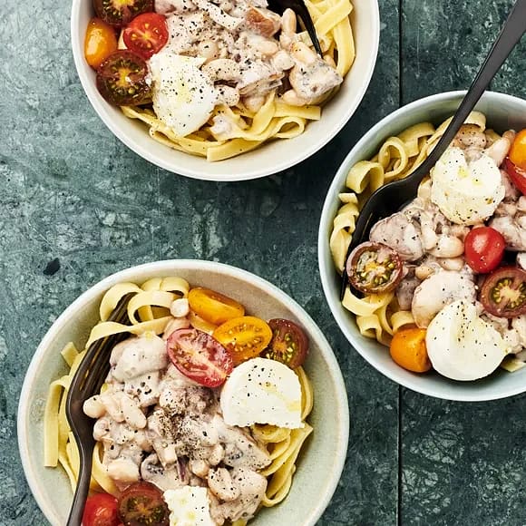 Svamppasta med mozzarella och tomat