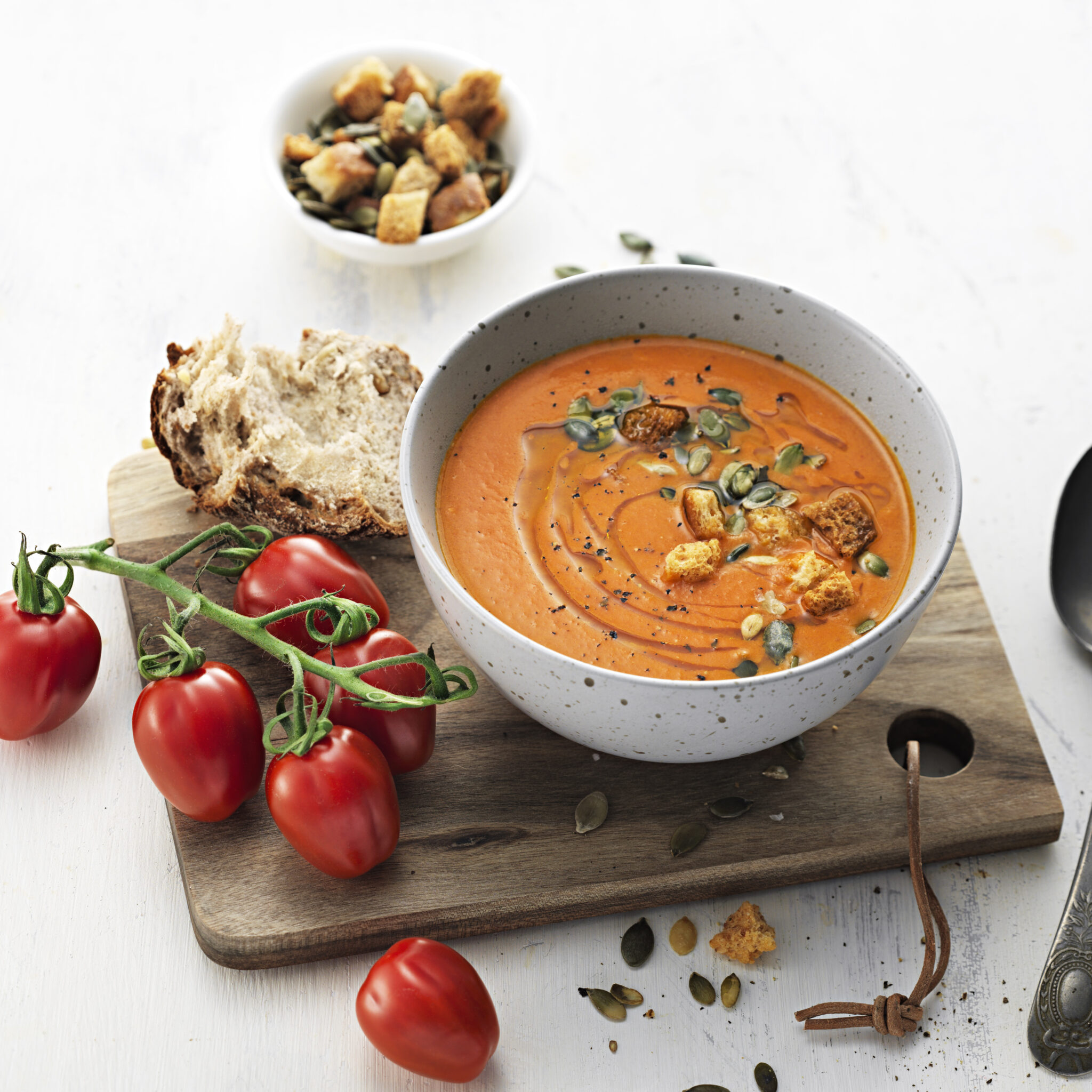Tomat- och paprikasoppa med pumpafrön
