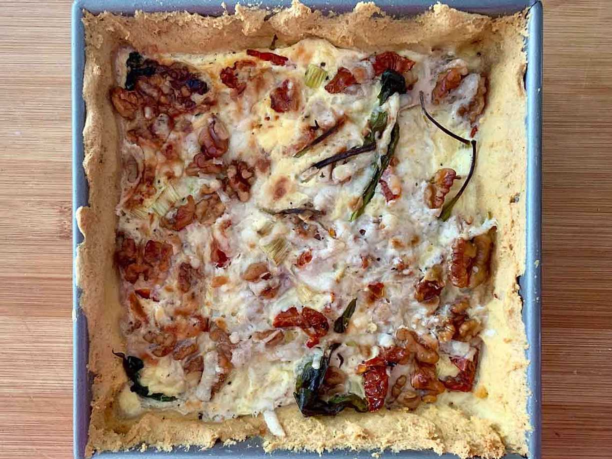 Paj med blast, parmesan och soltorkade tomater
