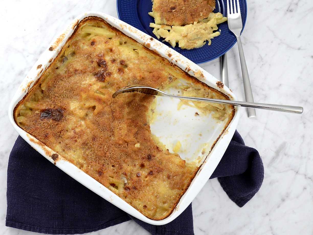 Pastagratäng med fläskfärs, mozzarella och tomat