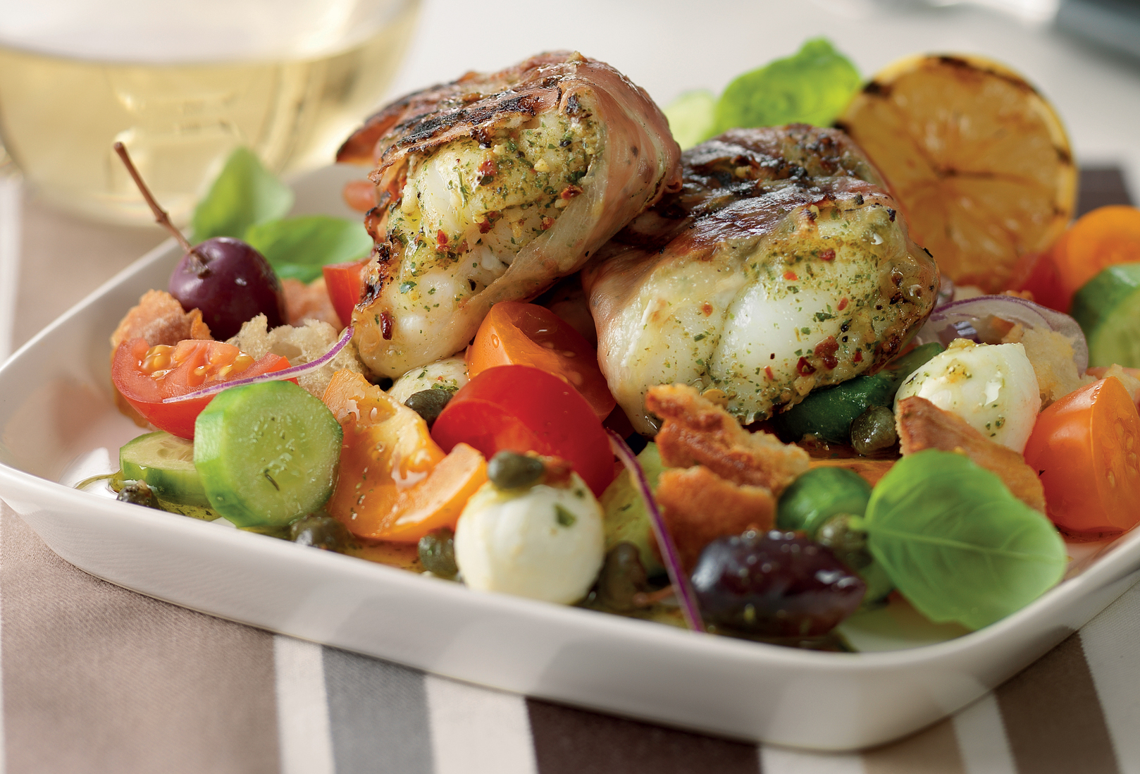 Parmafisk med tomat- och mozzarellapanzanella