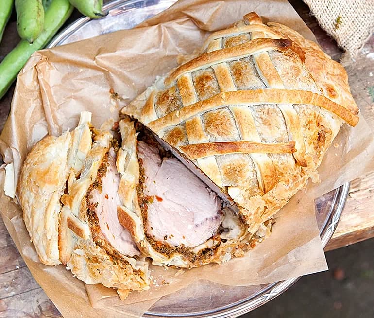 Inbakad fläskkarré med kapris och soltorkad tomat