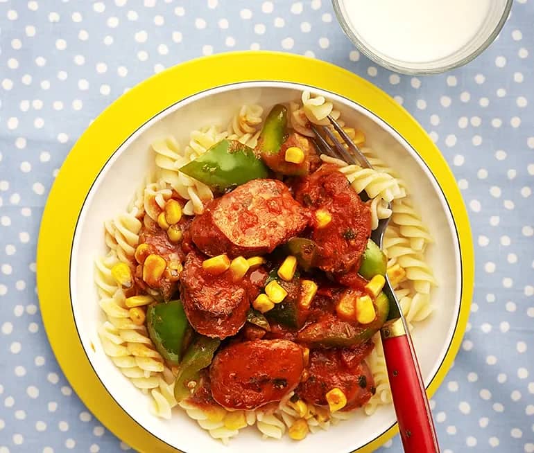 Tomat- och majscouscous med korv