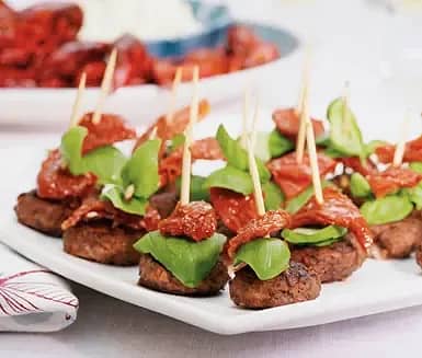Färsbiffar med soltorkad tomat och grönt mos