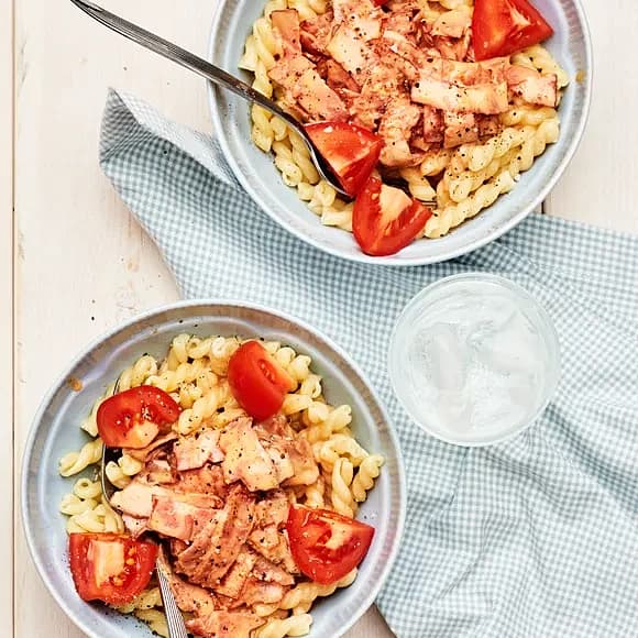 Skinkpasta med tomat och ricottasås