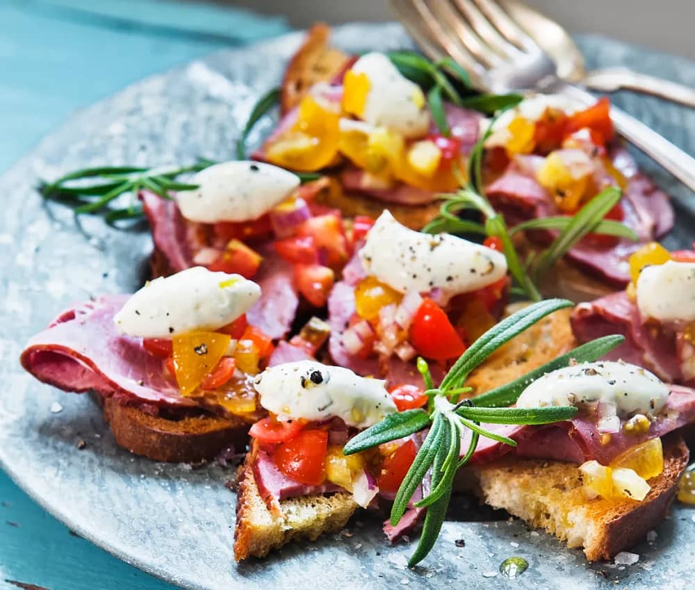 Lammbruschetta med tomat och rosmarinsmetana