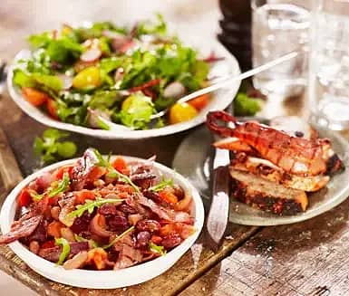 Rökt bönröra med tomat, vitlök och grillad kalkonfilé