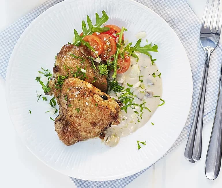 Vitlöksstekt kyckling med tomat- och rucolasallad