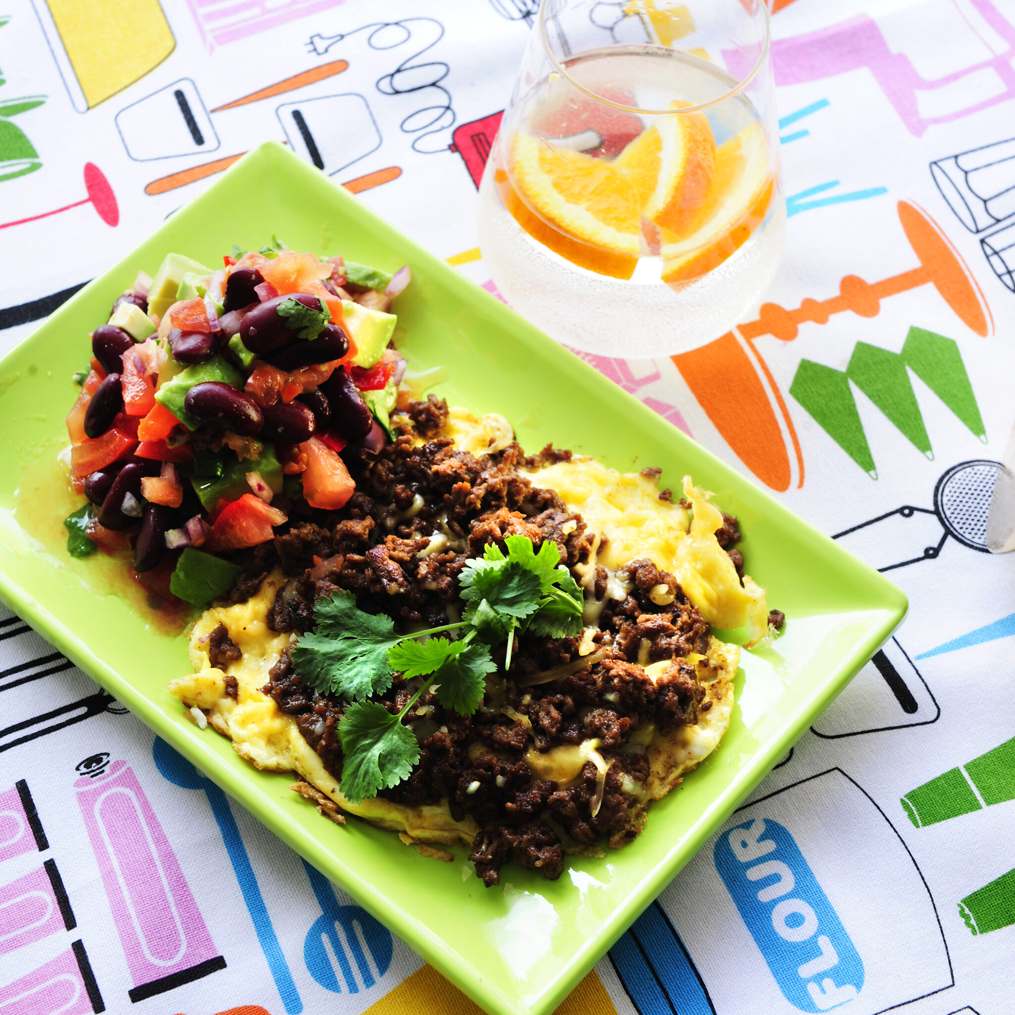 Tacoomelett med tomat- och bönsalsa