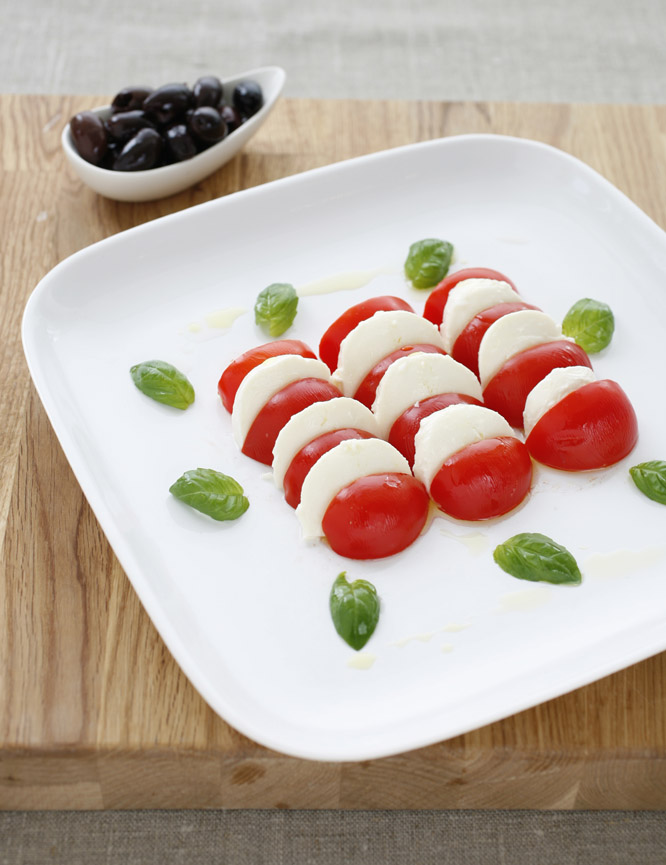 Tomat och minimozzarellasallad med oliver