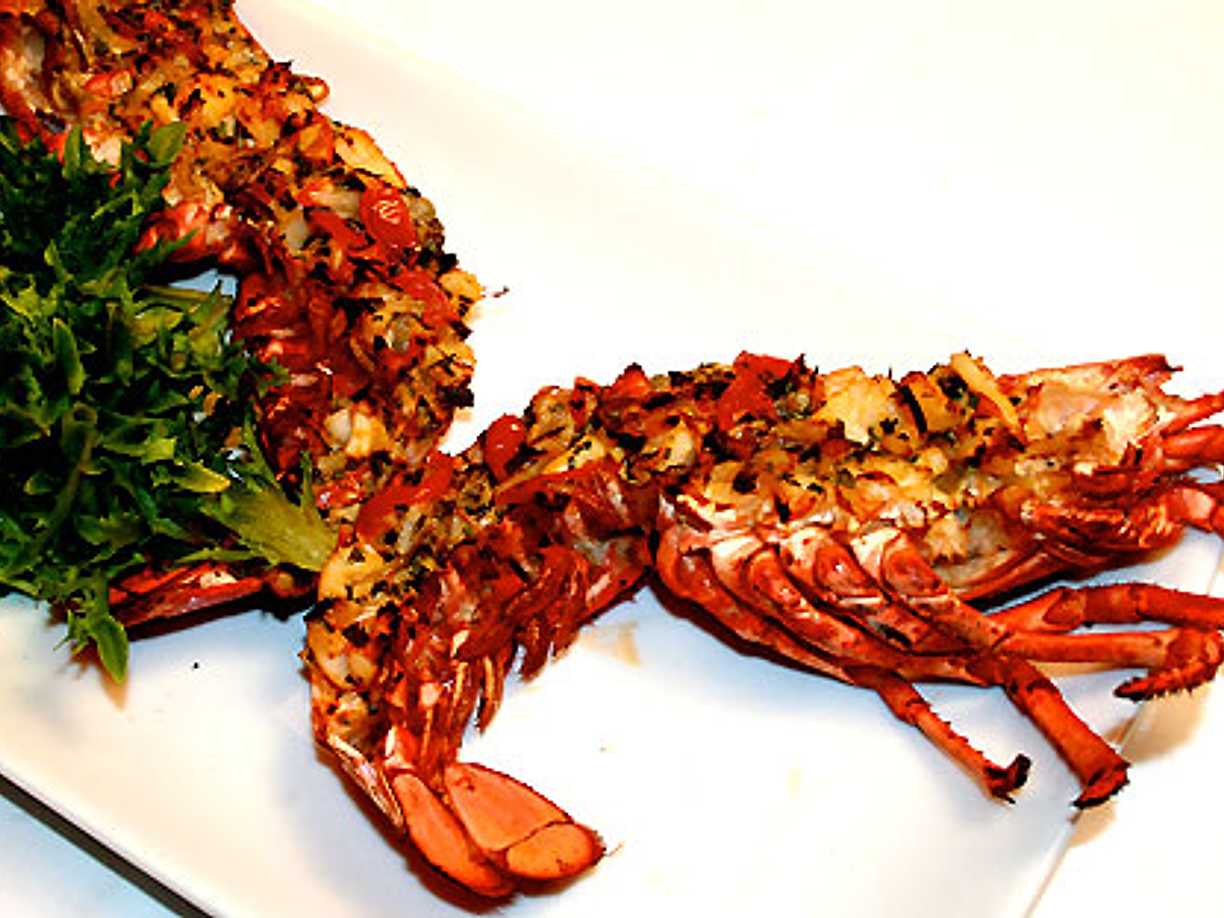 Gratinerad hummer med prästost, tomat, dragon och lök