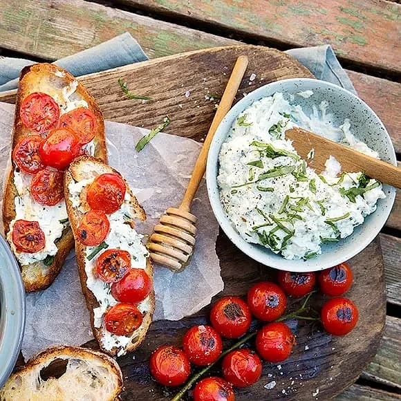 Tomat- och paprikagryta med ugnsbakad fetaost
