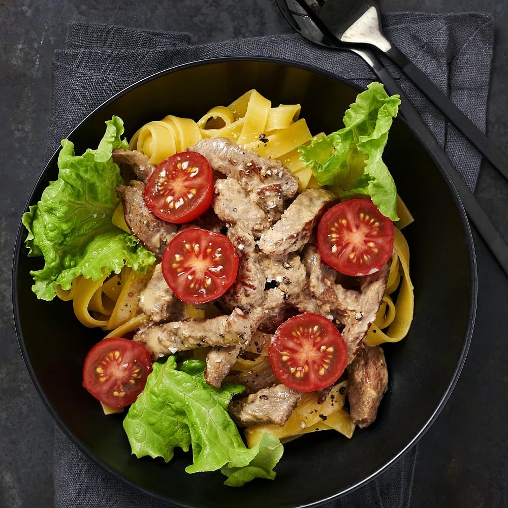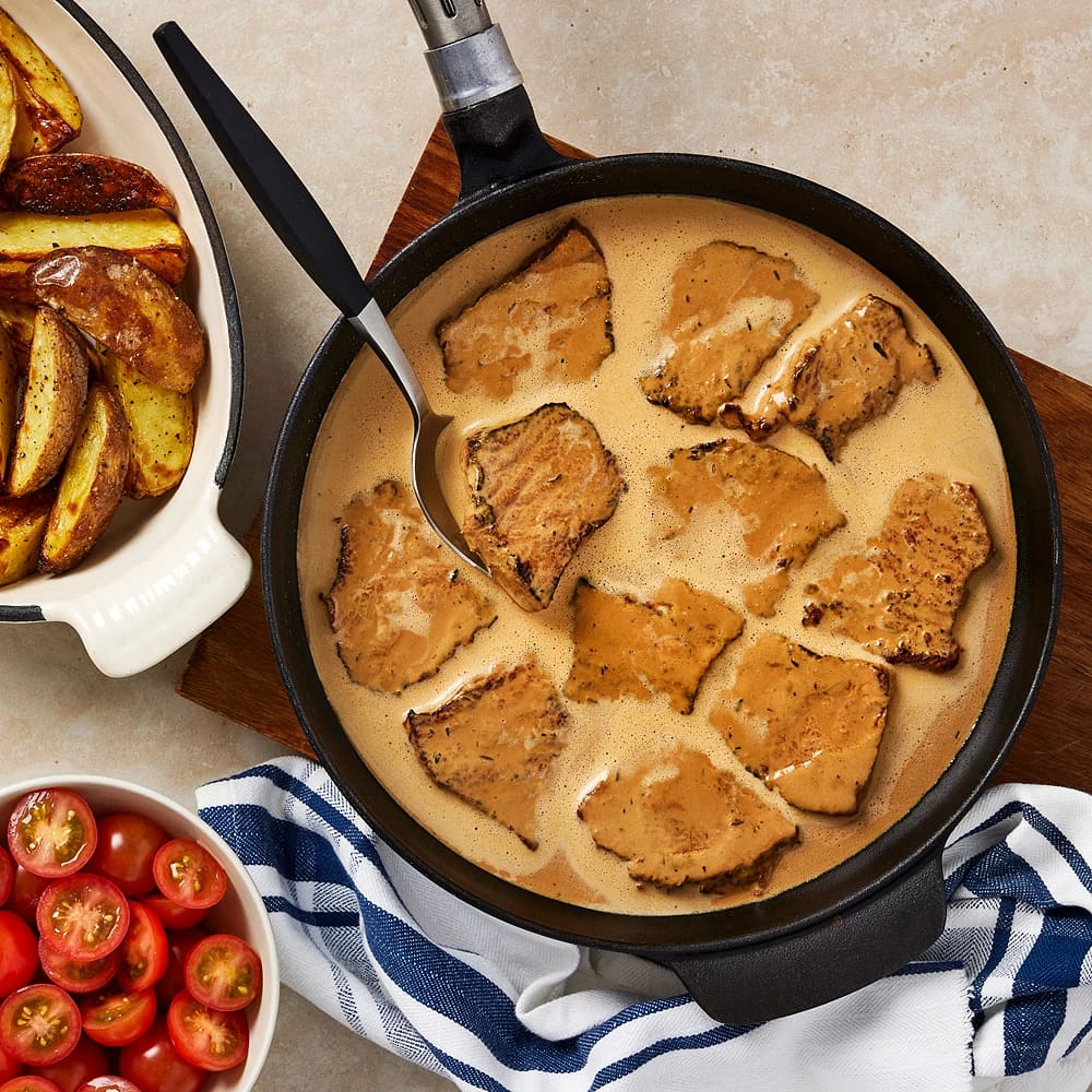 Krämig fläskfilégryta med svamp och soltorkade tomater