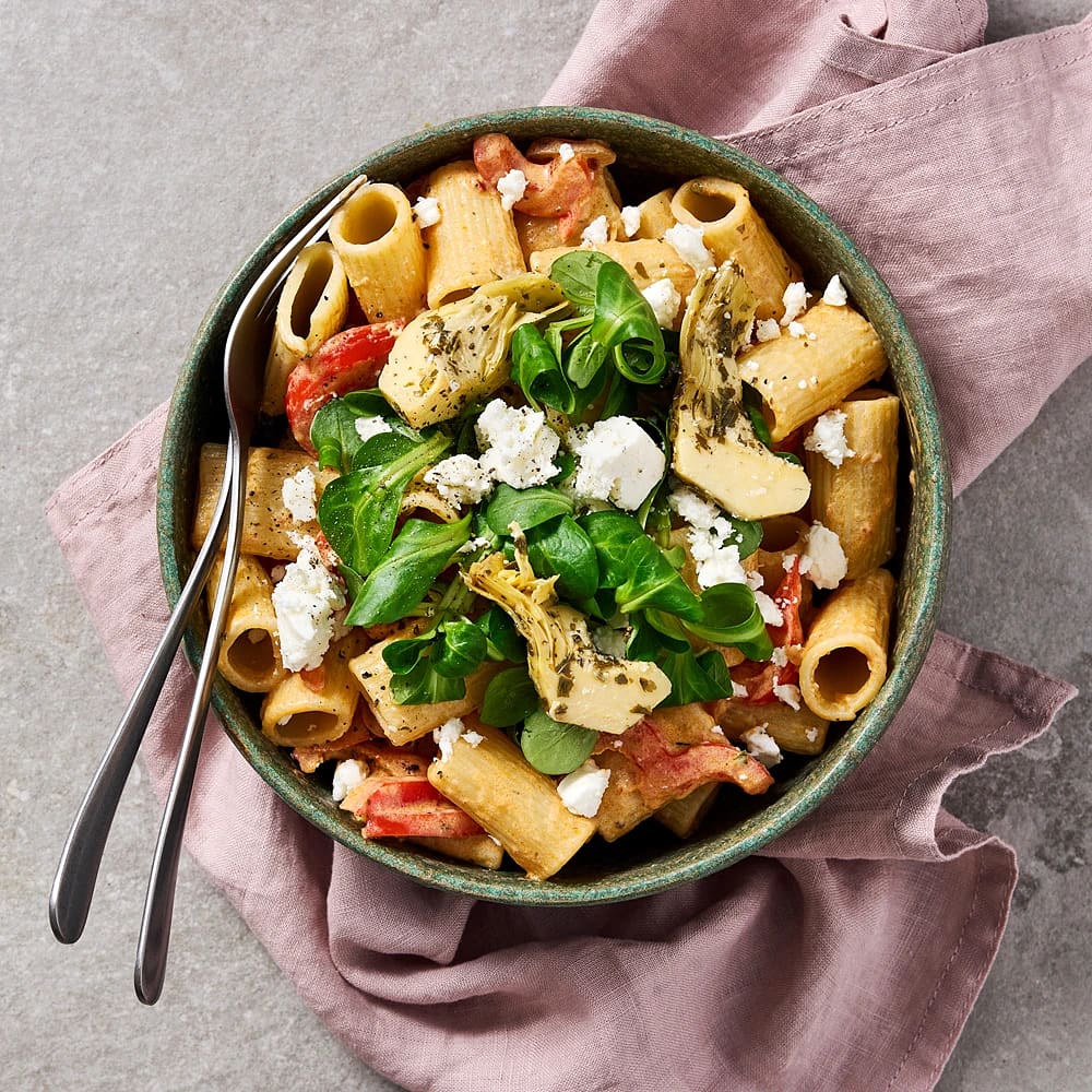 Krämig tomat- och kronärtskockspasta med rosmarin