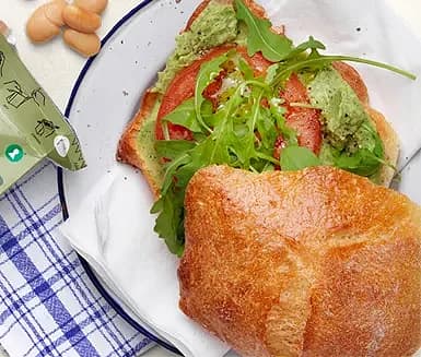 Macka med bönspread, tomat och ruccola