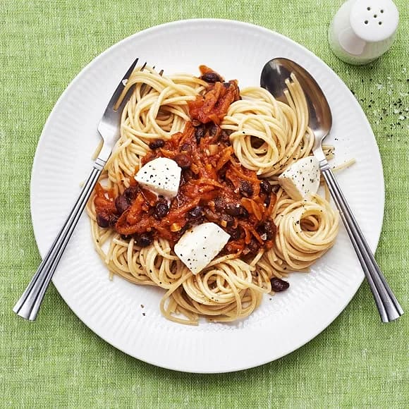Pasta med tomat- och bönsås samt mozzarella