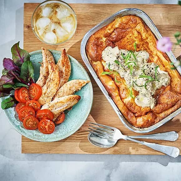 Färskostgratinerad kycklingfilé med tomat och majs