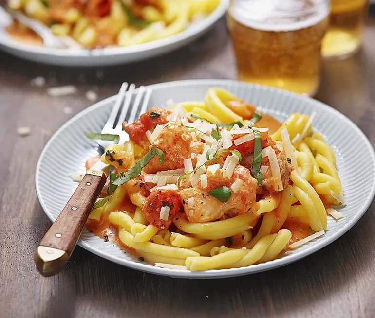 Pasta Pappardelle med kyckling, tomat och grana padano