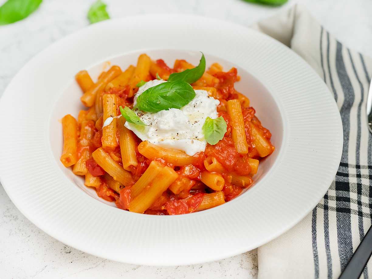 Pasta med rostade tomater och burrata