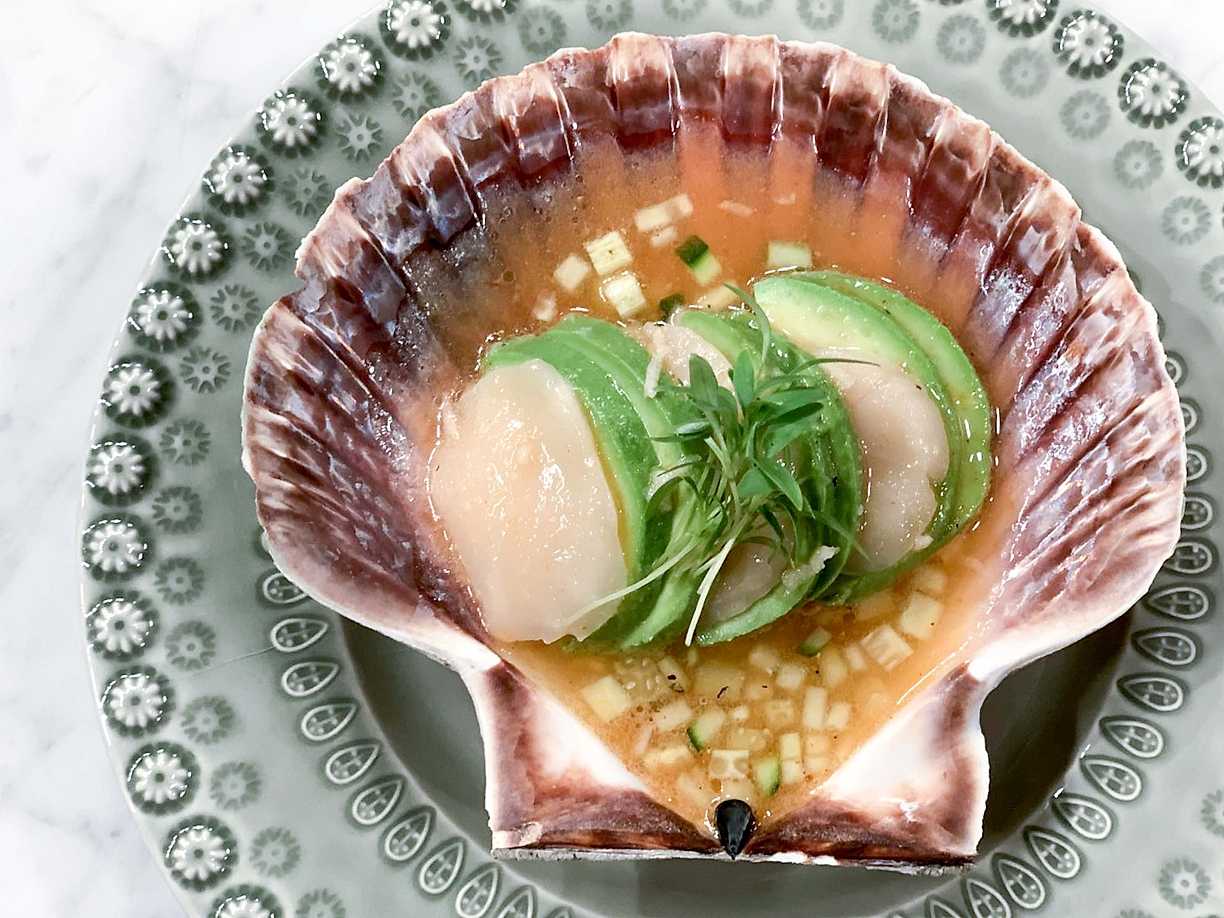Pilgrimsmusslor med citrus, tomat och chili