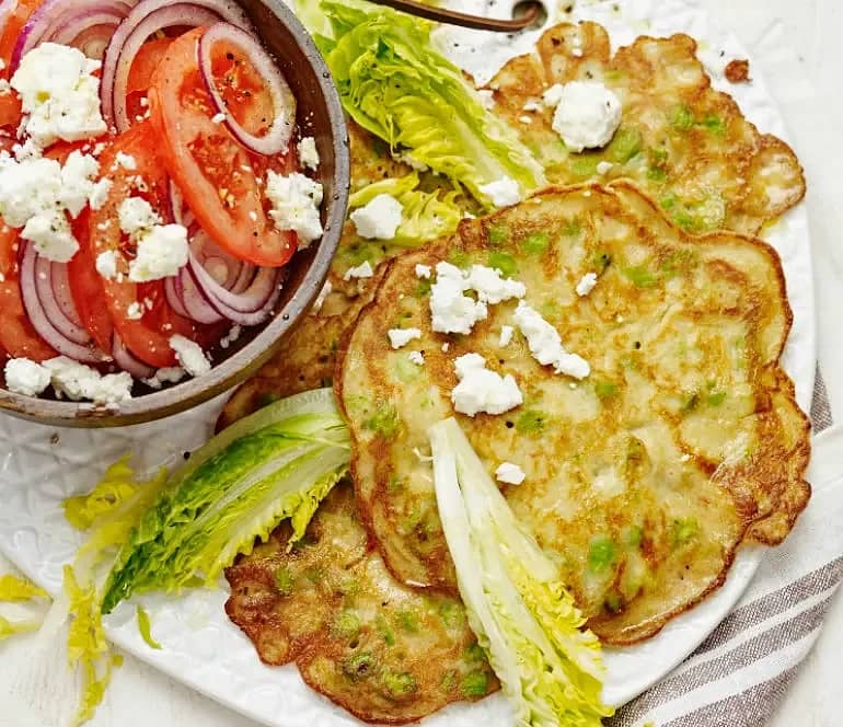 Ärtpannkakor med tomat- och fetaostsallad