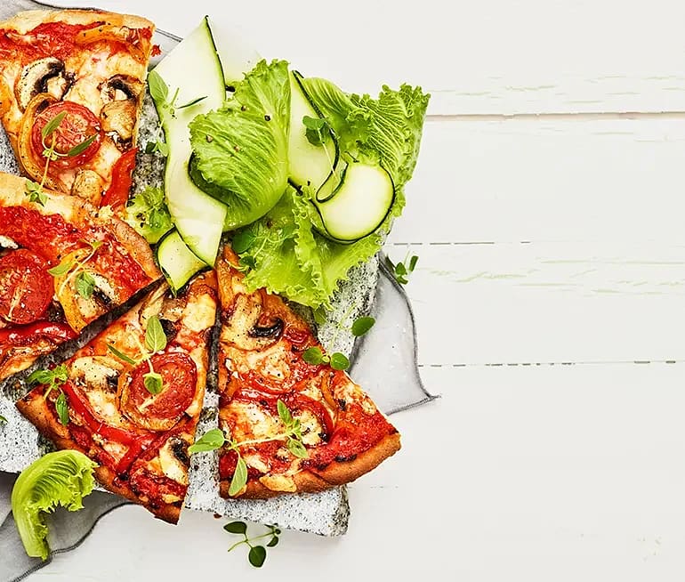 Pizza med rostad paprika, champinjoner, tomat och ajvar
