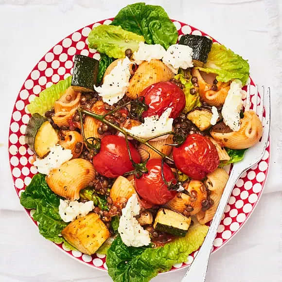 Pastasallad med bönor och tomater