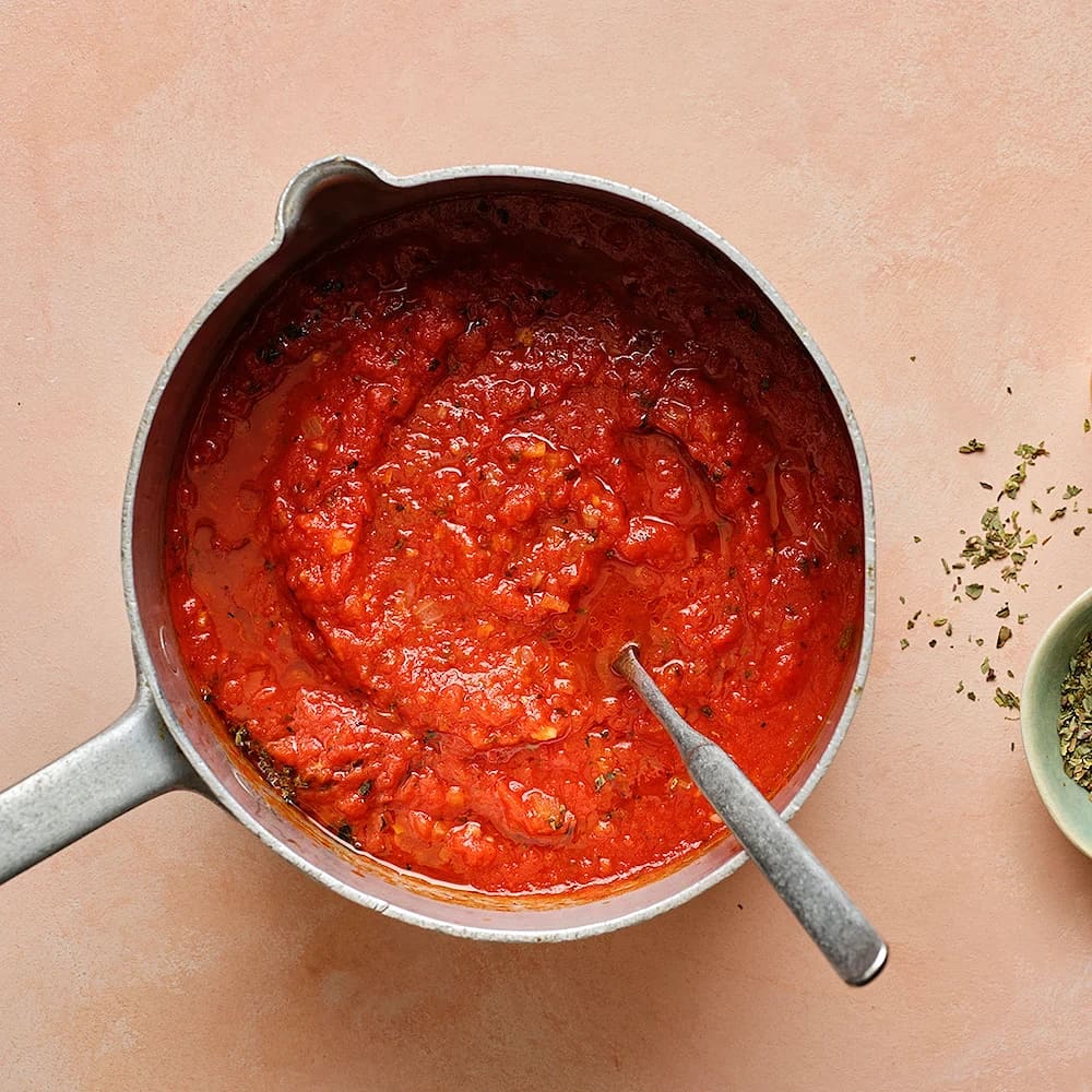 Tomatsås på krossade tomater