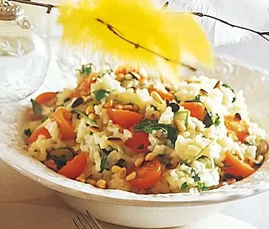 Ruccolarisotto med tomater och pinjenötter