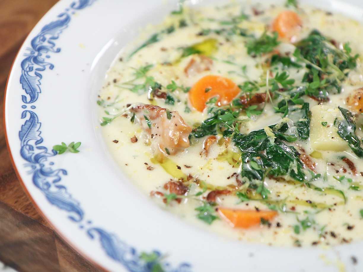 Toms ängasoppa med smörstekta kantareller
