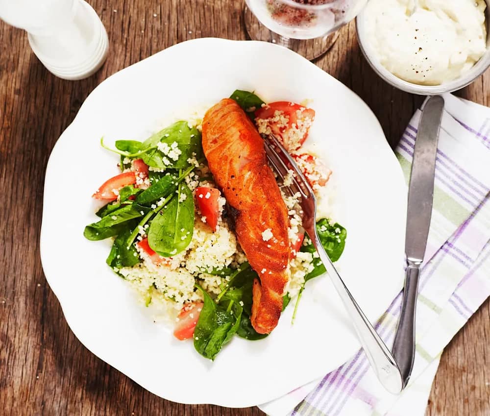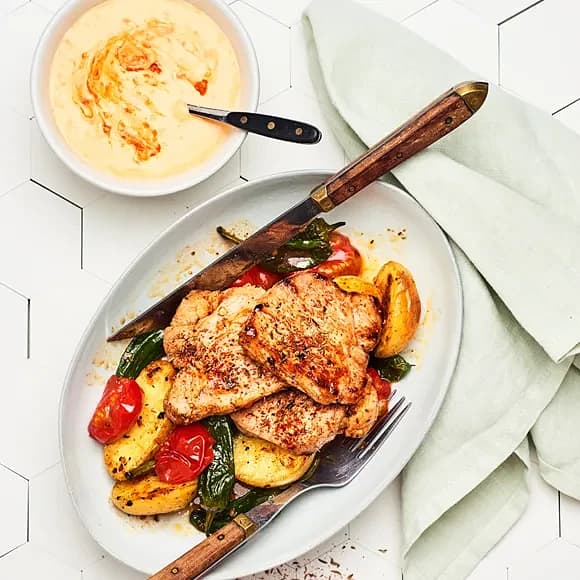 Tomat- och timjansbräserad kotlett, blomkål och mandel