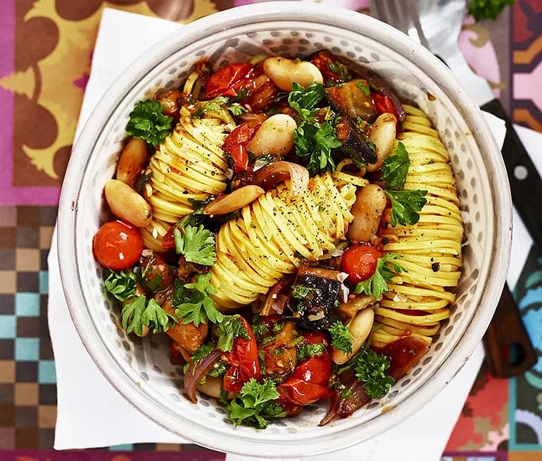 Bön- och rödbetsbiffar med pumpafröpistou, tomat och potatisgnocchi