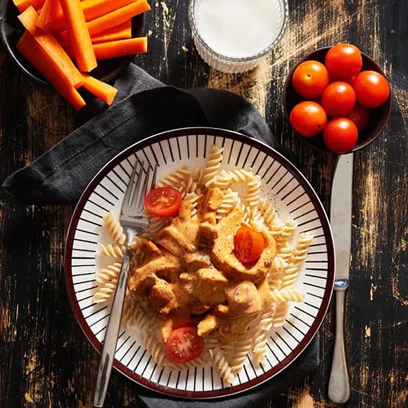 Krämig kycklinggryta med soltorkade tomater och basilika