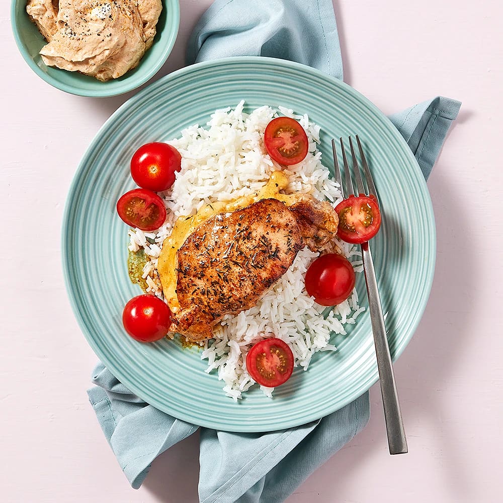 Kycklingfilé med soltorkade tomat och oliver med pestokryddad linspuré