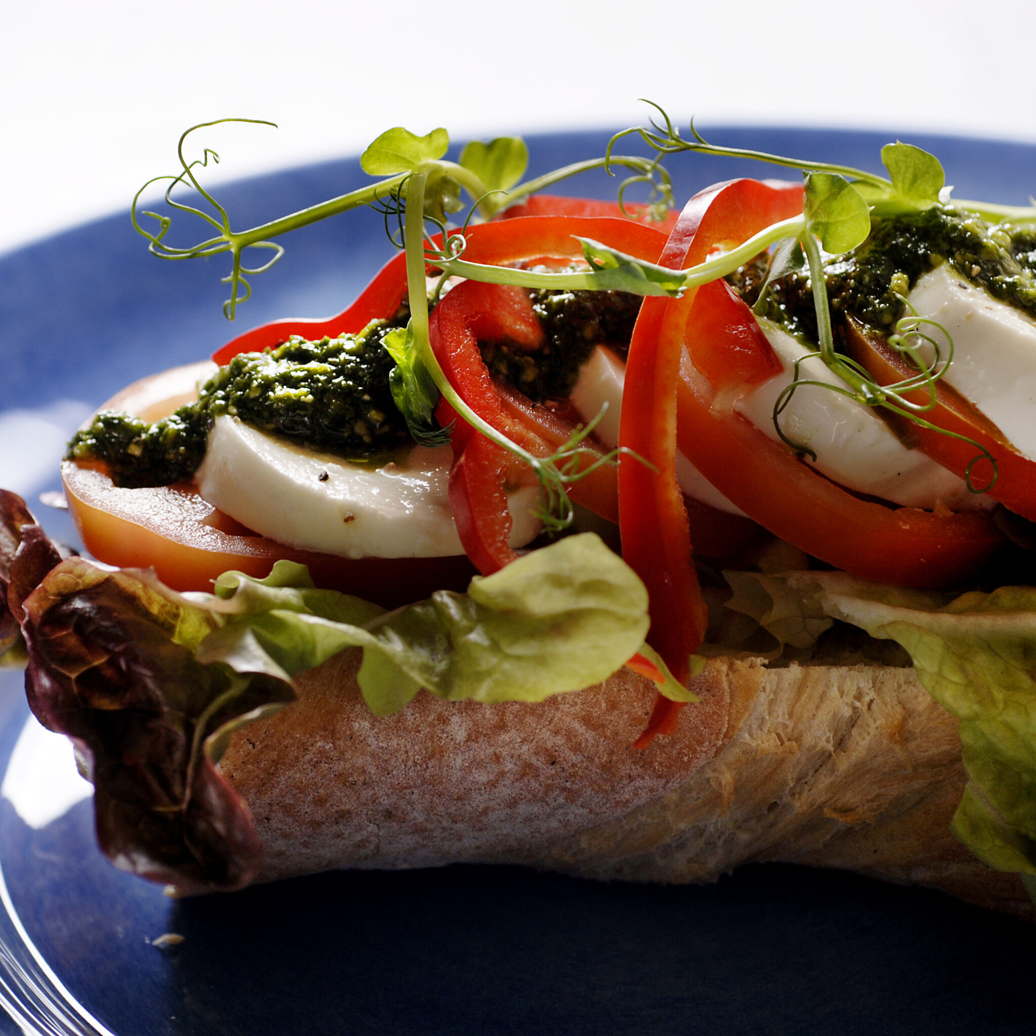 Färsbiffar med ajvar och tomat- och mozzarellasallad