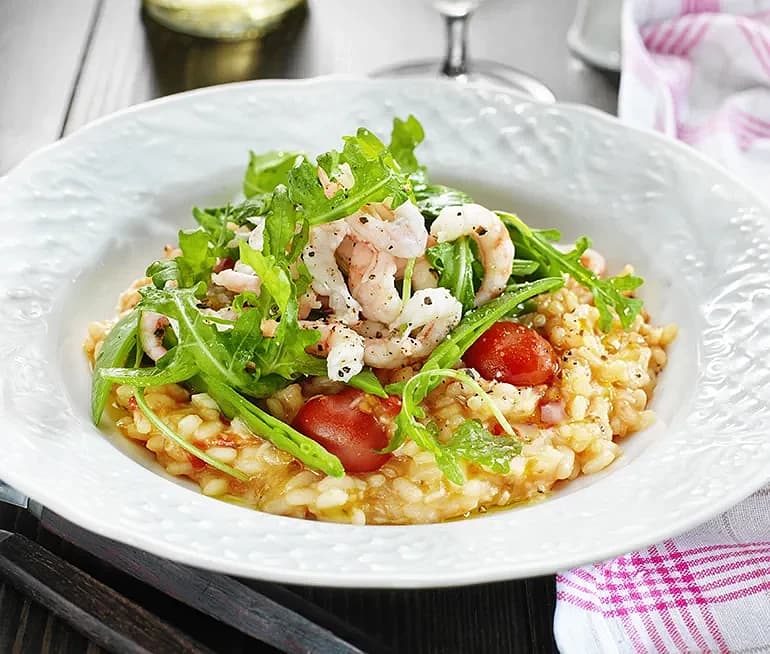 Krämig tomatrisotto med räkor