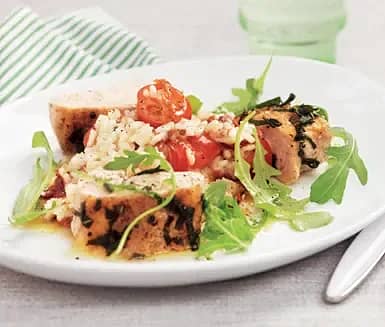 Fetaostspäckad kycklinglårfilé med tomatrisotto