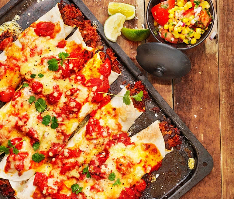 Enchilada med köttfärssås och tomatsalsa