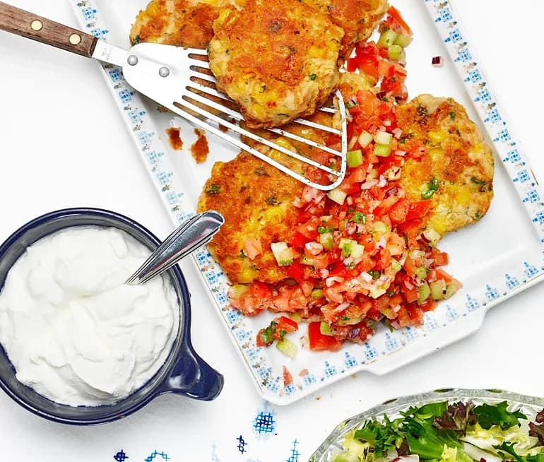 Ärtiga majsbiffar med tomatsalsa