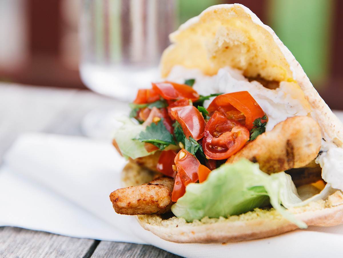 Kebabspett i bröd med tomatsalsa