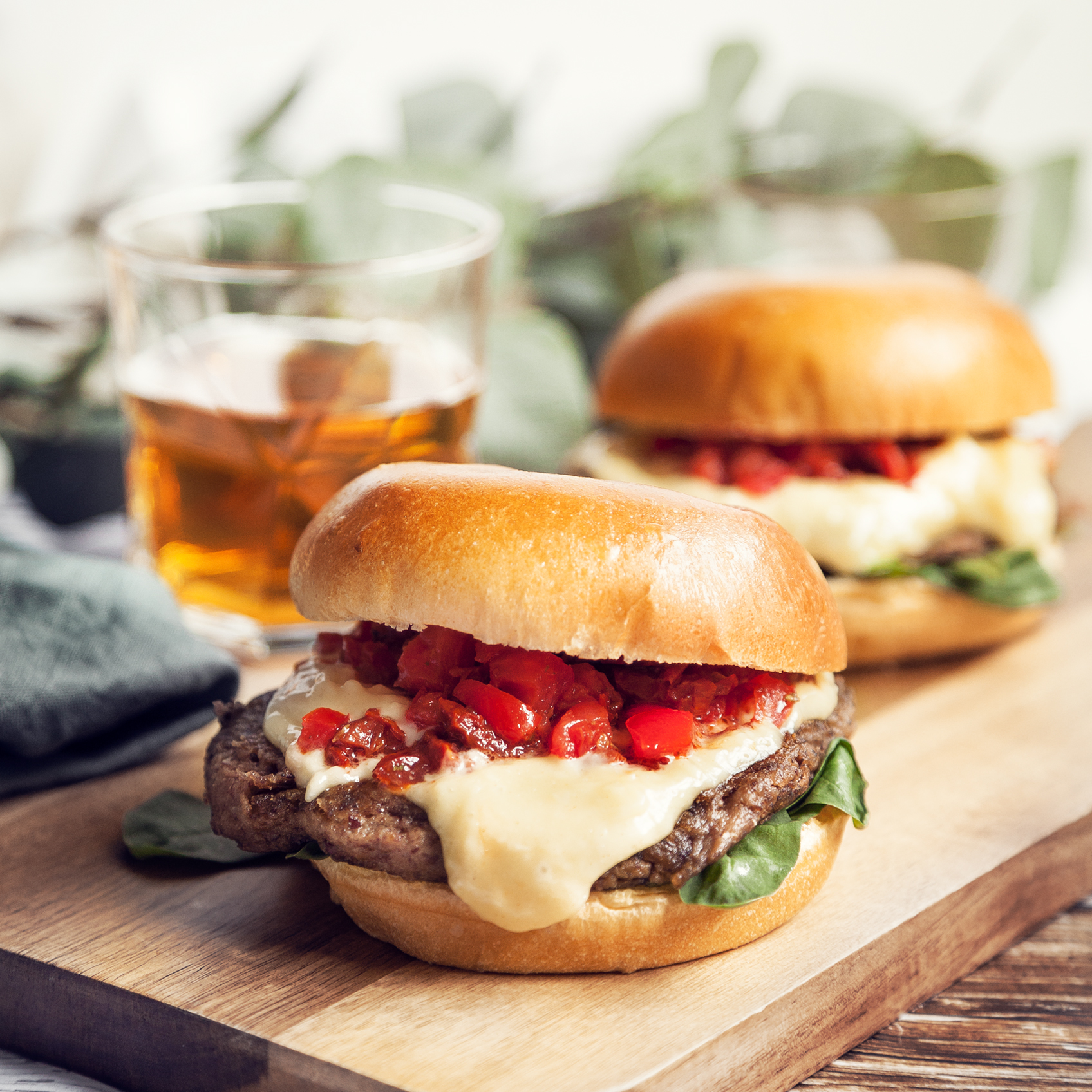 Bönburgare med tomatsalsa och parmesanaioli