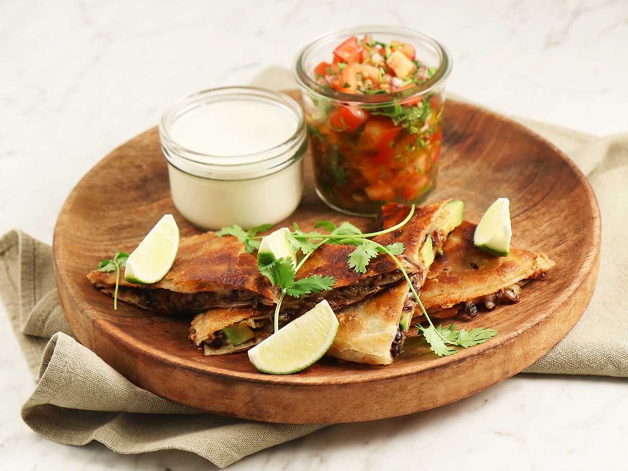 Kyckling- och ostquesadillas med tomatsalsa
