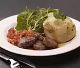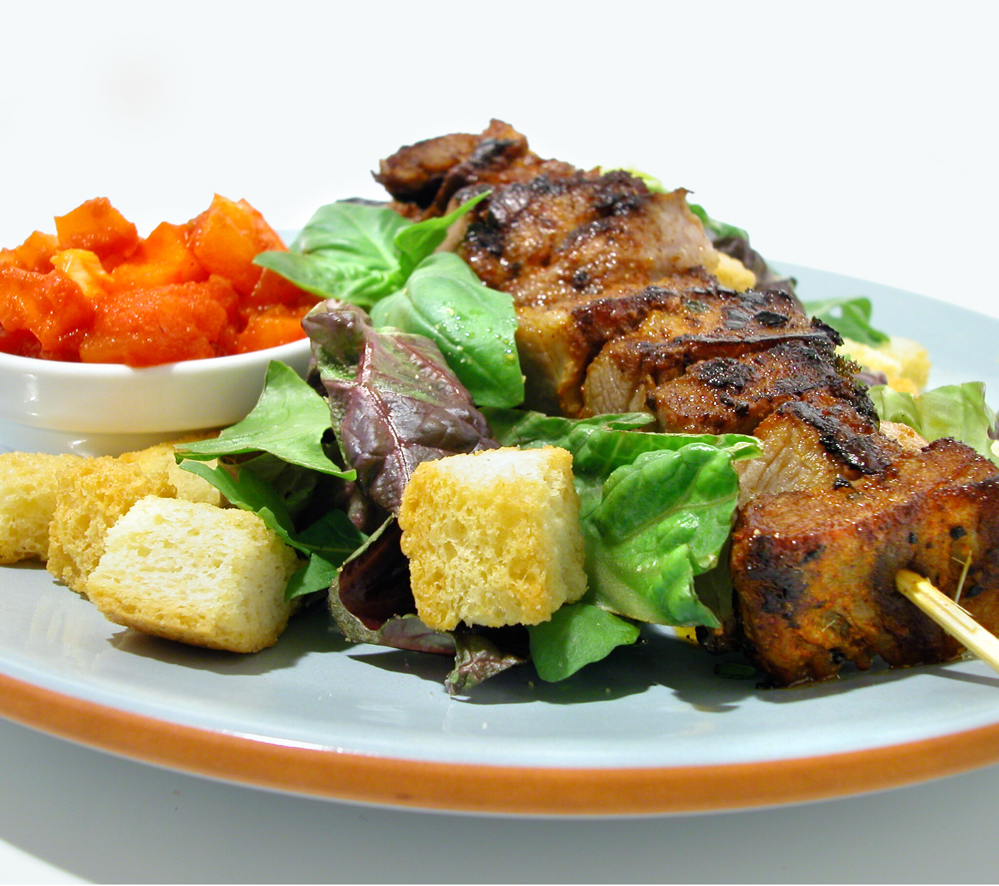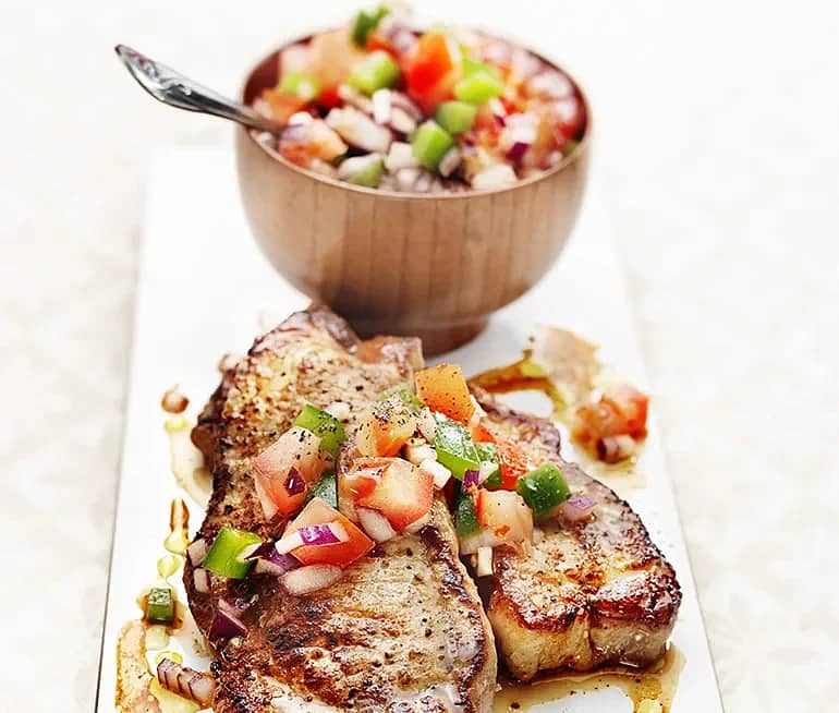 Fläskkarré med grillad spetskål, rostad färskpotatis, tomatsalsa och aioli