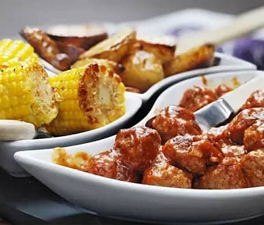 Baconlindade salsicciaspett med ljummen lök- och tomatsalsa