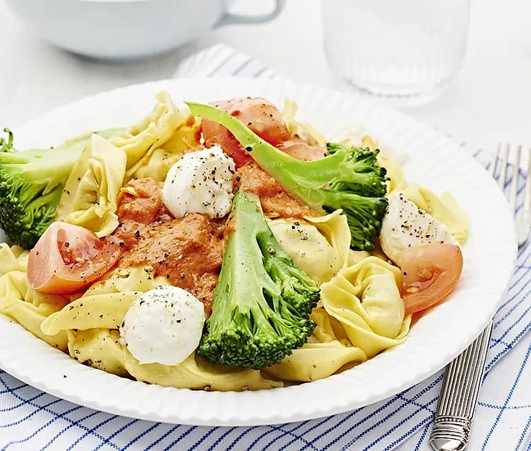 Tortelloni med tomatsås och mozzarella