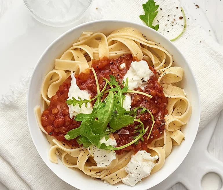 Pasta med tomatsås och linser